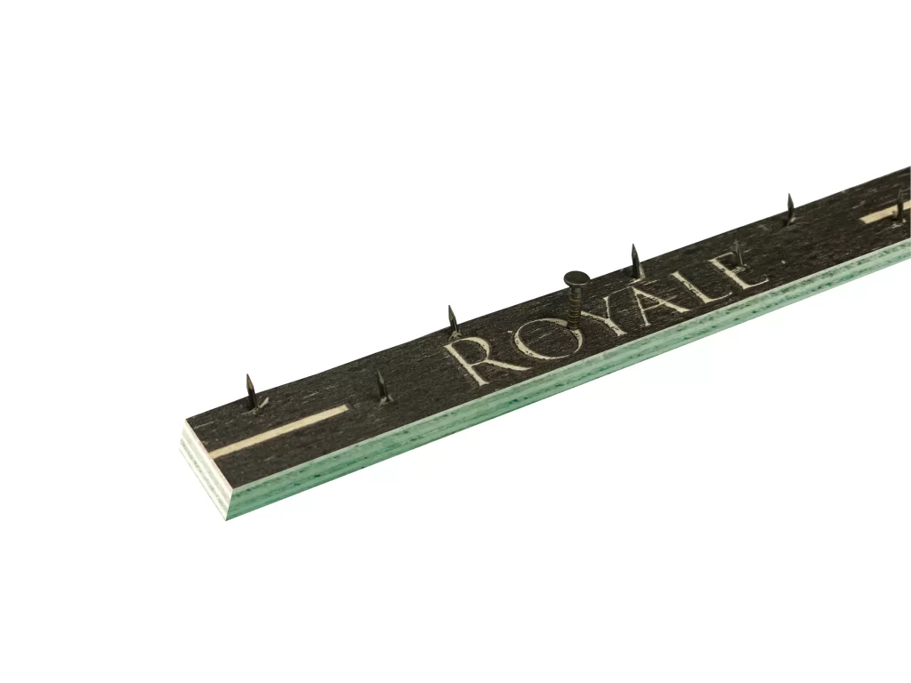 The ideal product for stretch fit carpet installations, this wood gripper is made from high-grade resin bonded plywood, five-ply (6mm) thickness, machined on one edge to a defined angle and penetrated from the underside by two rows of passivated pins.